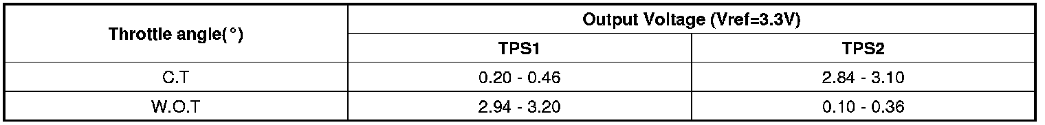 2. Start engine and check output voltages of TPS 1 and 2 at C.T and W.O.T.