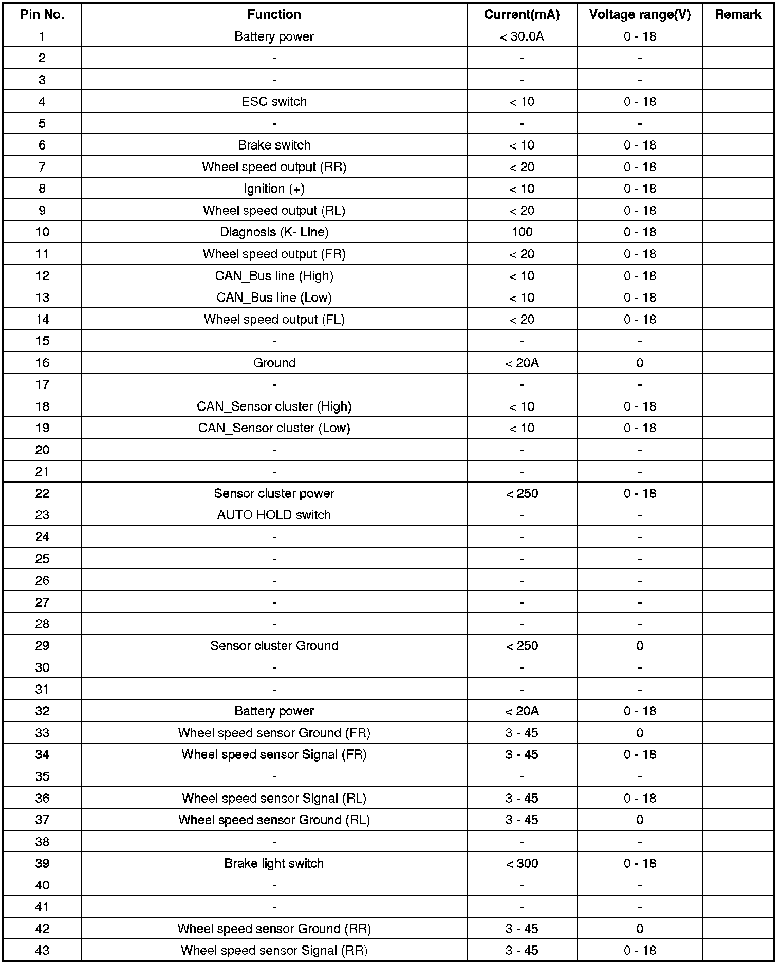 ESC Connector Input/Output