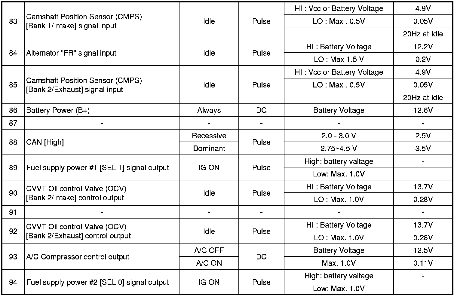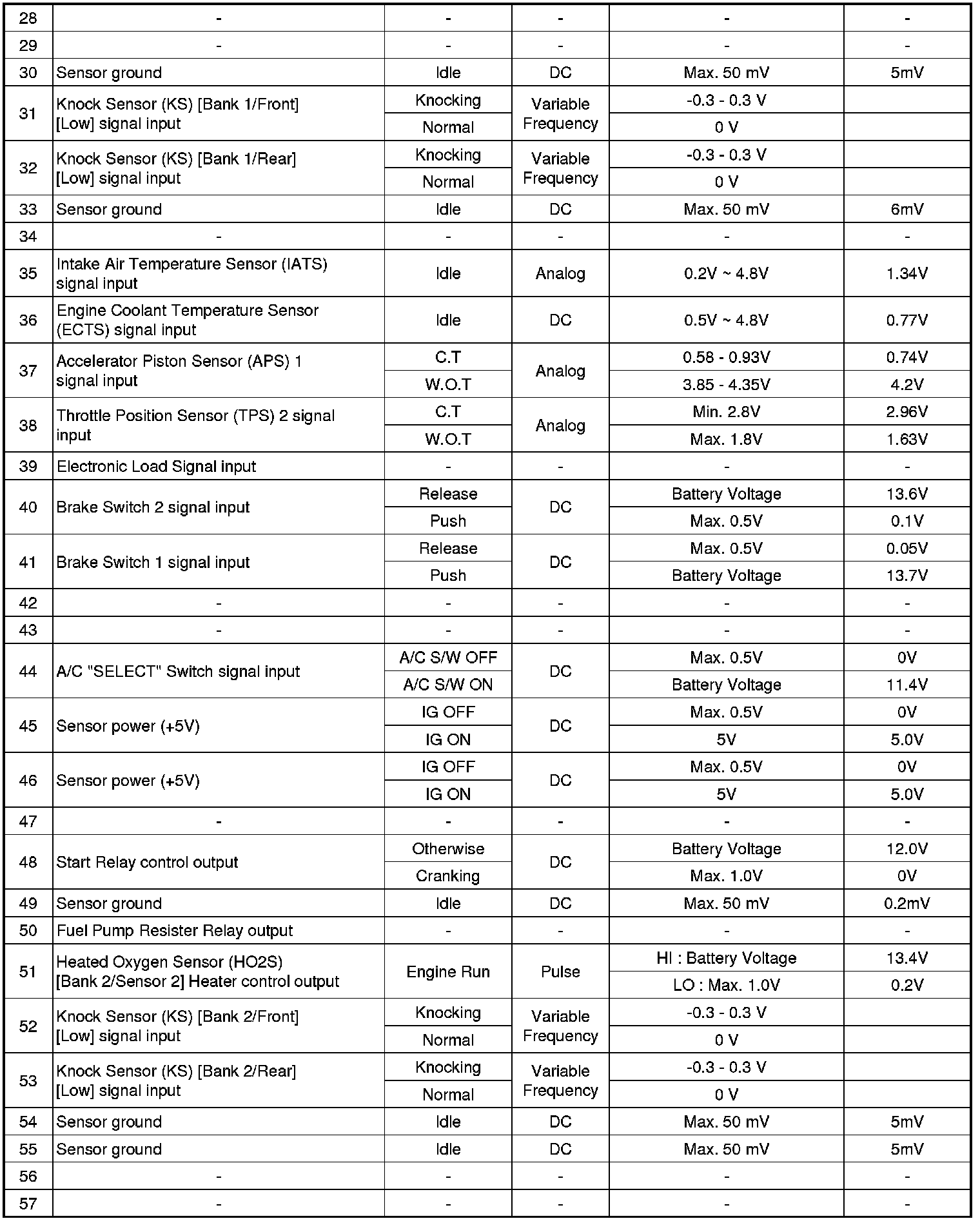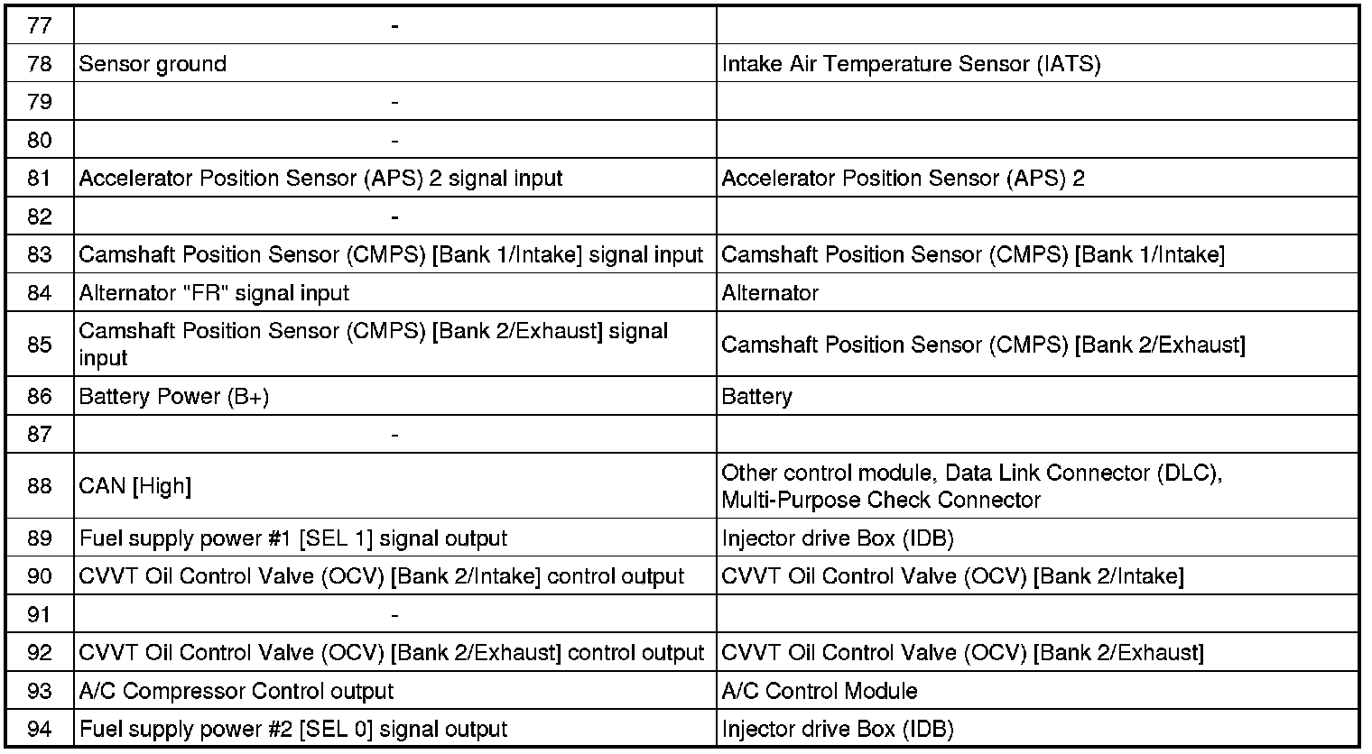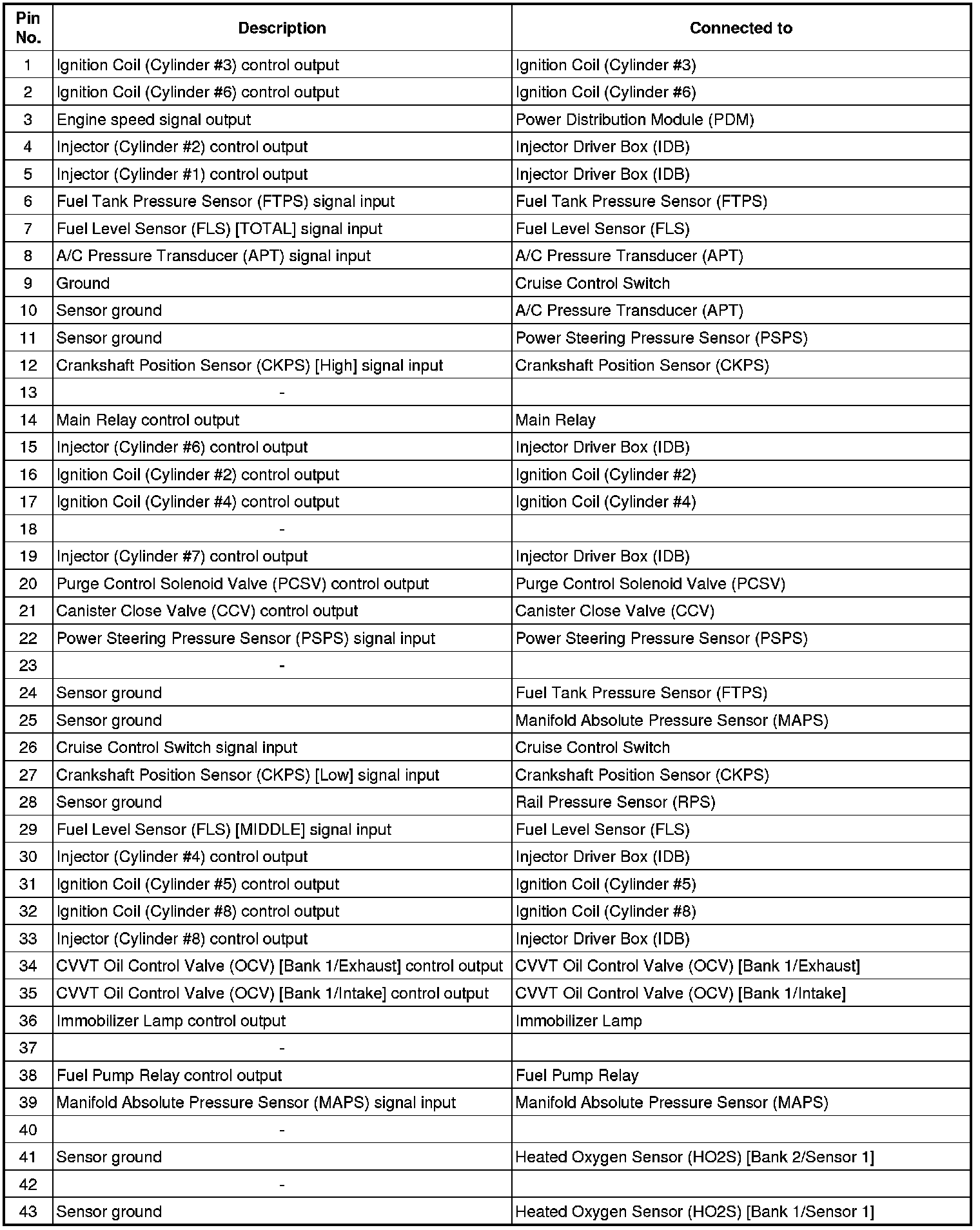 ECM Terminal And Input / Output signal