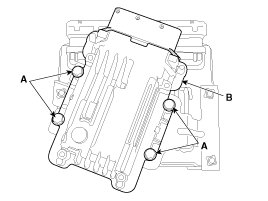 5. Remove the TCM (B) after removing the bolts (A).