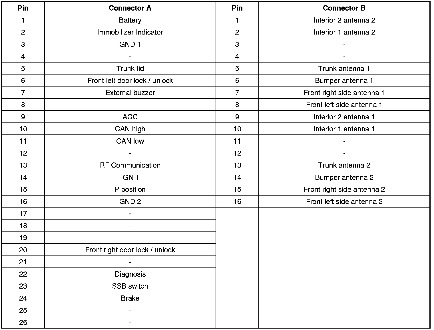 Connector Pin Information