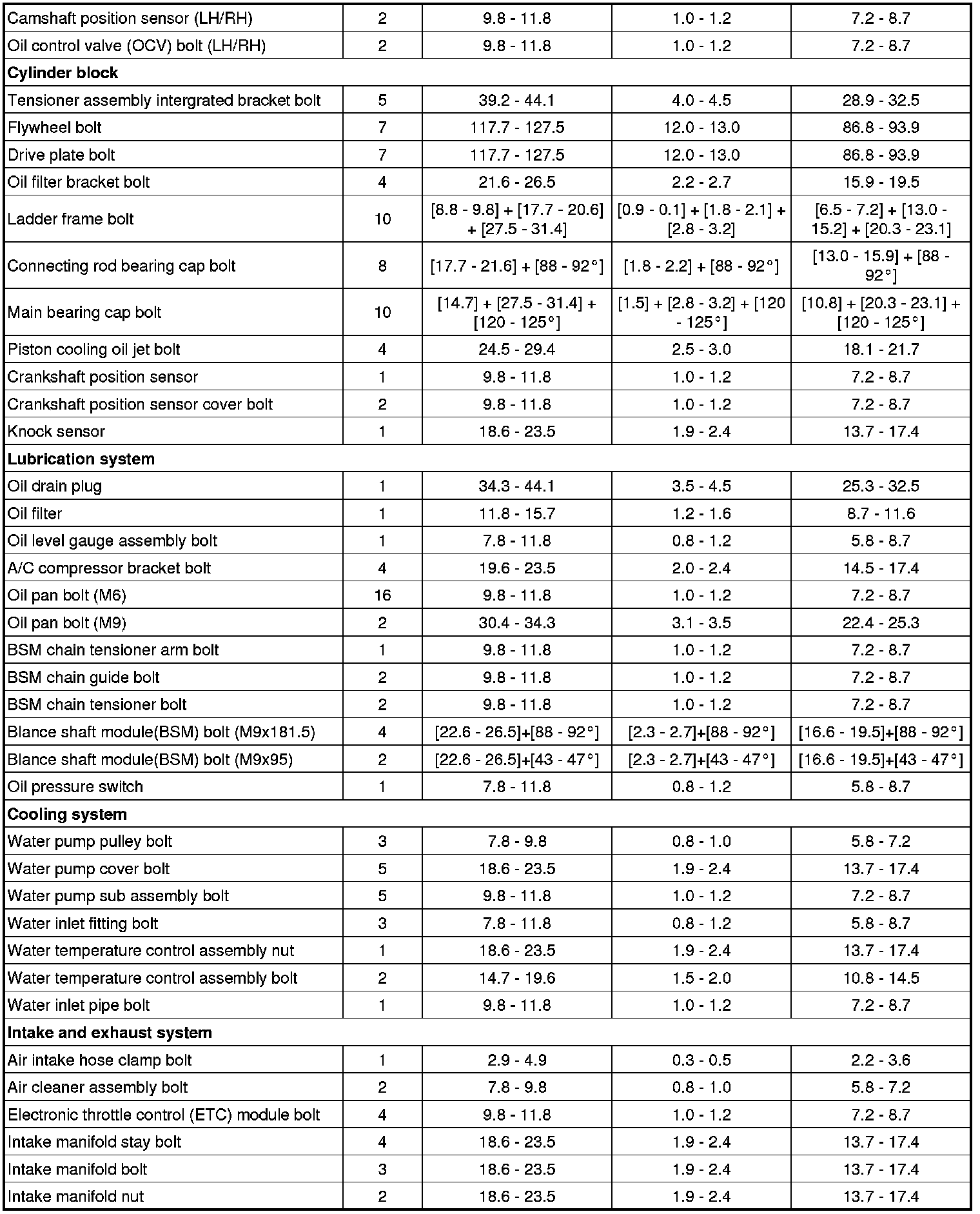 Tightening Torques