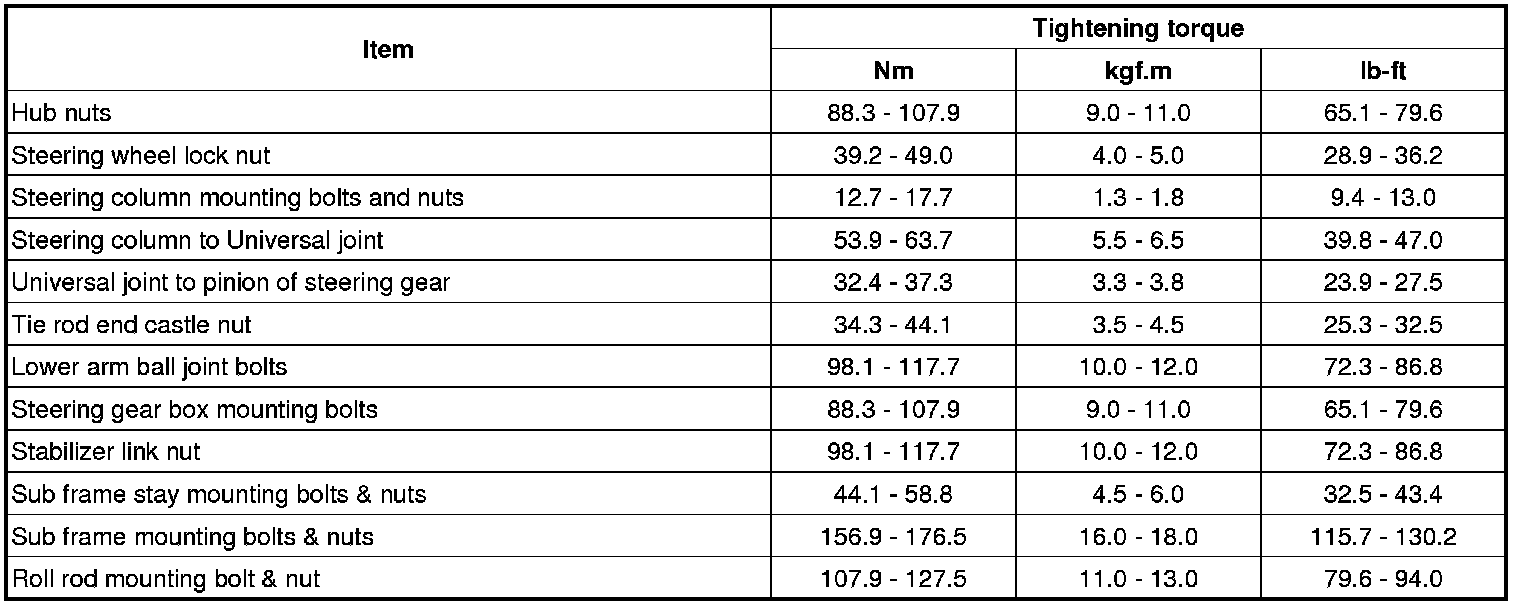 Tightening Torques