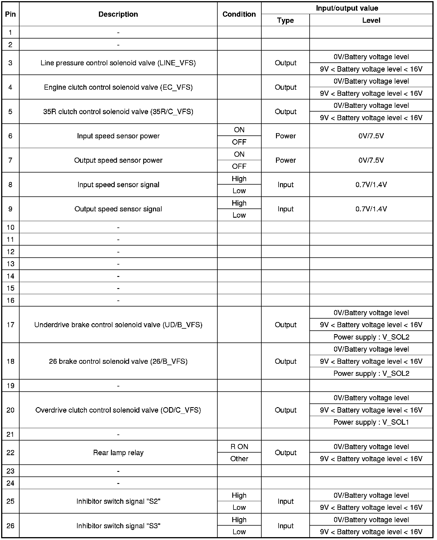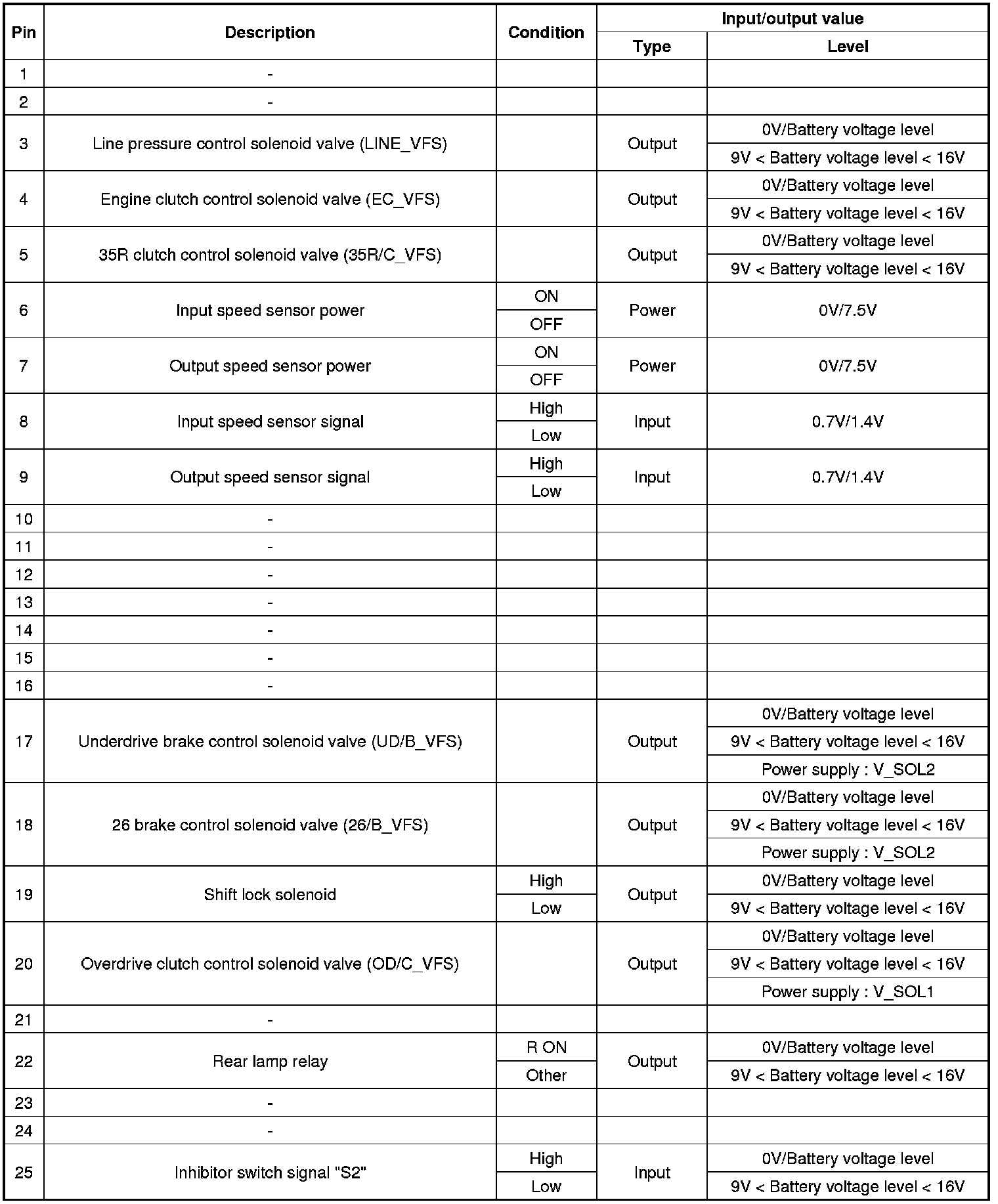 TCM Terminal input/ output signal