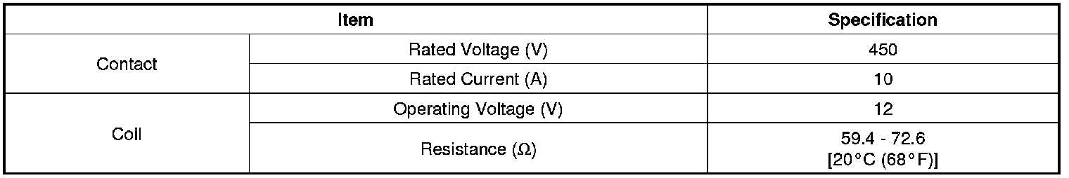 Drive Motor Power Relay: Specifications