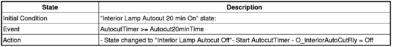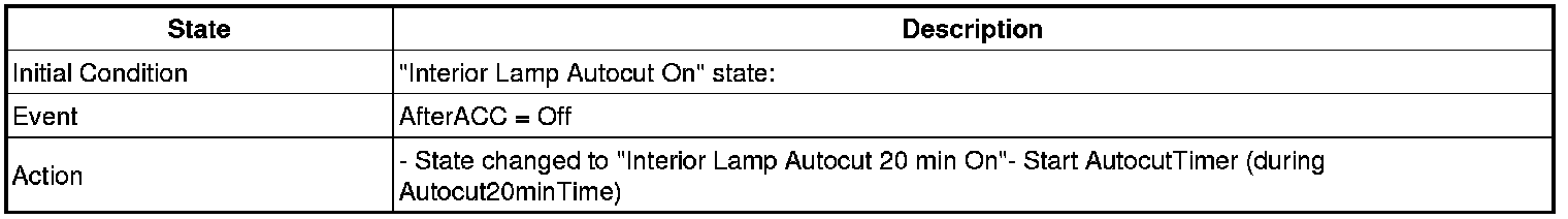 3. Transitions from "Interior Lamp Auto cut Power 20 min On" state: