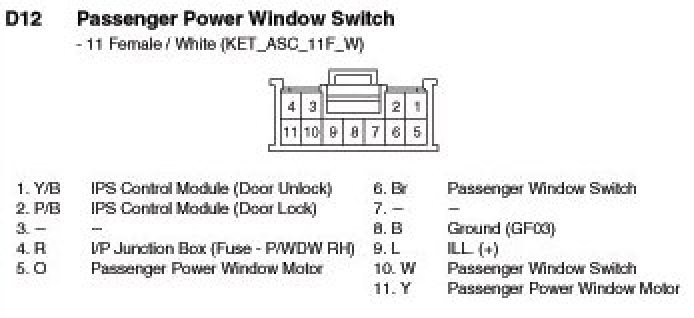 D12 Passenger Power Window Switch: