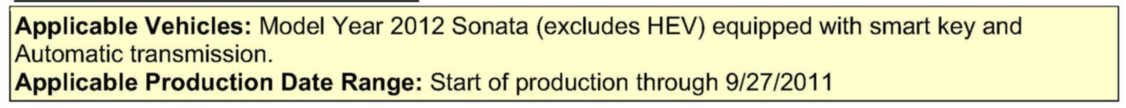 This bulletin describes the procedure of replacing the BCM, SMK, PDM, and reprogramming of the BCM to provide Blue Link remote start capability for 2012MY Sonatas produced from Start of Production through 9/27/2011.