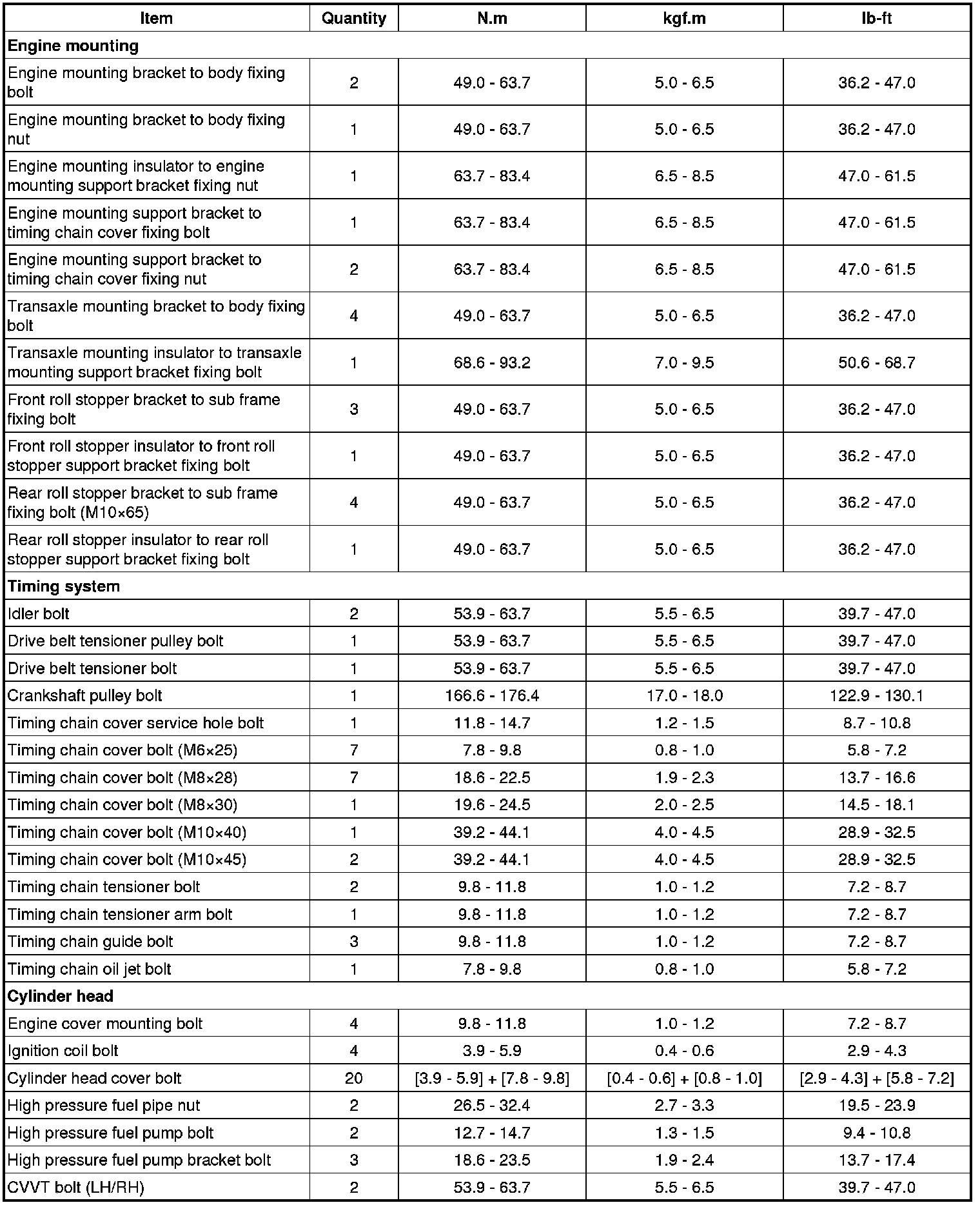 Tightening Torques