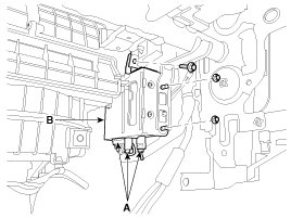 3. Disconnect the connectors (A) and loosen the bolt (1EA) and the nuts (2EA), then remove the Telematics unit (B).