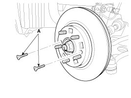 3. Remove the front brake disc by loosening the screws (A).