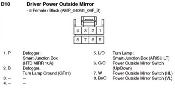D10 Driver Power Outside Mirror: