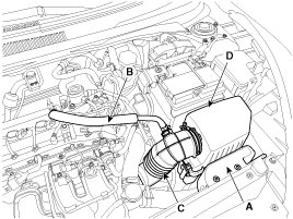 (3) Disconnect the air intake hose (C) and then remove the air cleaner assembly (D).