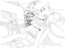 7. Disconnect the intake OCV (Oil control valve) connector (A) and the exhaust OCV (Oil control valve) connector (B).