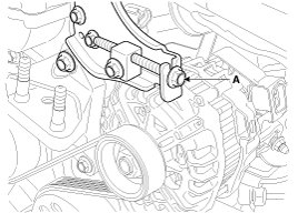 20. Loosen the alternator tension adjusting bolt (A) to loosen tension.
