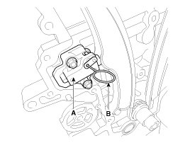 Before removing the tensioner, fix the piston of the tensioner with a pin through the hole(B) at compressed position.