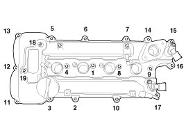 22. Tighten the cylinder head cover bolts with the order and steps.
