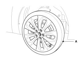 1. Remove the RH front tire (A).