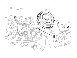- Be careful not to damage the pulley (B) and compressor during removal/installation.