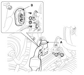 4. Remove the expansion valve (A) from the evaporator core and then remove the cover (B).