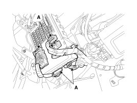 19. Disconnect the connectors and then remove the heater & blower unit (A) from the crash pad.