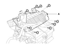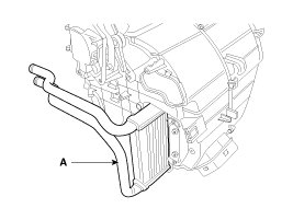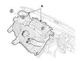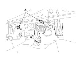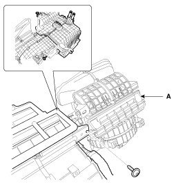 21. Loosen the mounting screws and then remove the heater core cover (A).