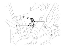 3. Remove the A/C pressure transducer (B) after disconnecting the connector (A).