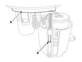 7. Remove the ORVR valve (A) after releasing hooks (B).