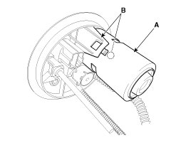 2. Disconnect the electric pump wiring connector (A) and the fuel sender connector (B).