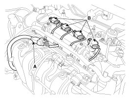 3. Disconnect the injector extension connector (A) and the ignition coil connectors (B).