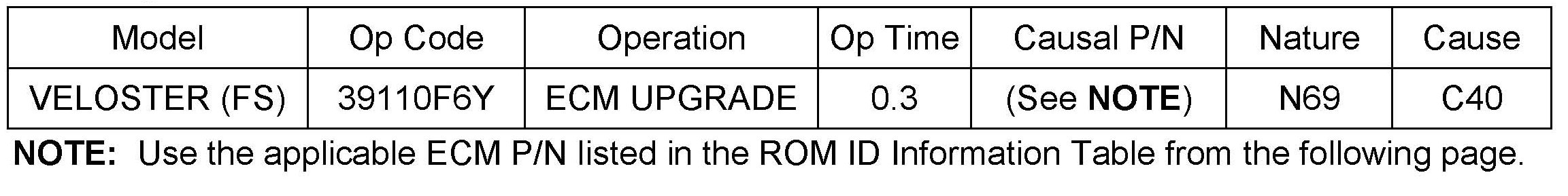 Verify the ECM ROM ID before updating the vehicle's software. Refer to the table.