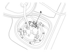 5. Remove the fuel tank pressure sensor (A) after releasing the hooks vertically.