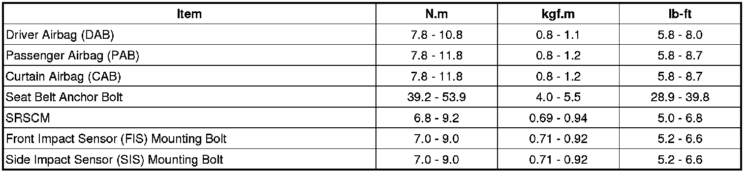 Air Bag Systems: Specifications