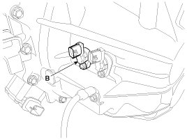 3. Loosen the mounting bolt and then remove the input shaft speed sensor (B).