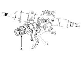 2. Remove the steering column upper and lower shrouds (A) after removing 3 screws.