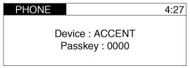 3. The audio displays "Device : [ACCENT] Passkey: 0000"