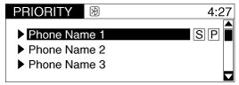 2. Select "Phone", then "Priority" in PHONE menu.
