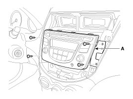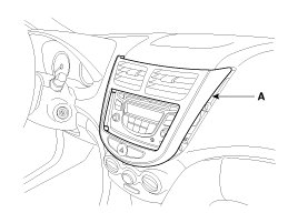 2. Using a screwdriver or remover, remove the center fascia garnish (A).