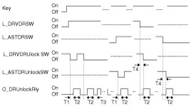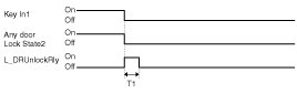 (2) If the state becomes Key In1 =on & L_DRVDR SW=open & L_DRV DR Unlock SW=lock, After 0.5sec perform output of O_DR Unlock Rly for 1sec.