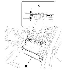 3. Disconnect the pin (A) and then remove the glove box (B).