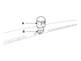 5. Disconnect the diagnosis connector (A) and hood release handle cable (B).