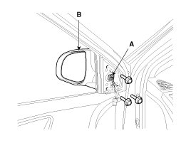 1. Push the inside rear view mirror base (A) up to remove the inside rear view mirror assembly (B).