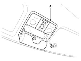 2. Open the sunglass case cover from the overhead console then remove the 2 screws holding the overhead console. Disconnect the switch connector and then remove the overhead console lamp (A).