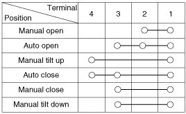 3. Check for continuity between the terminals. If the continuity is not as specified, replace the sunroof switch.