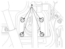 6. Remove the brake booster mounting nuts (A).