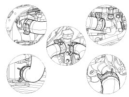 - Install the air intake hose while the plate of the hose clamp must be in line with the stopper of the hose.