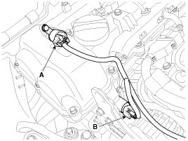 15. Disconnect the fuel hose (A) and the PCSV (Purge control solenoid valve) hose (B).