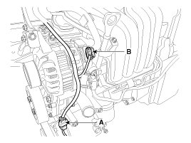 (5) The oxygen sensor connectors (A), the condenser connector (B)