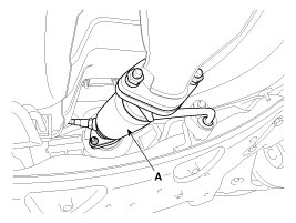 19. Remove the front muffler (A) after removing the rear oxygen sensor connector from the bracket.
