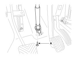 20. Remove the steering u-joint mounting bolt (A).